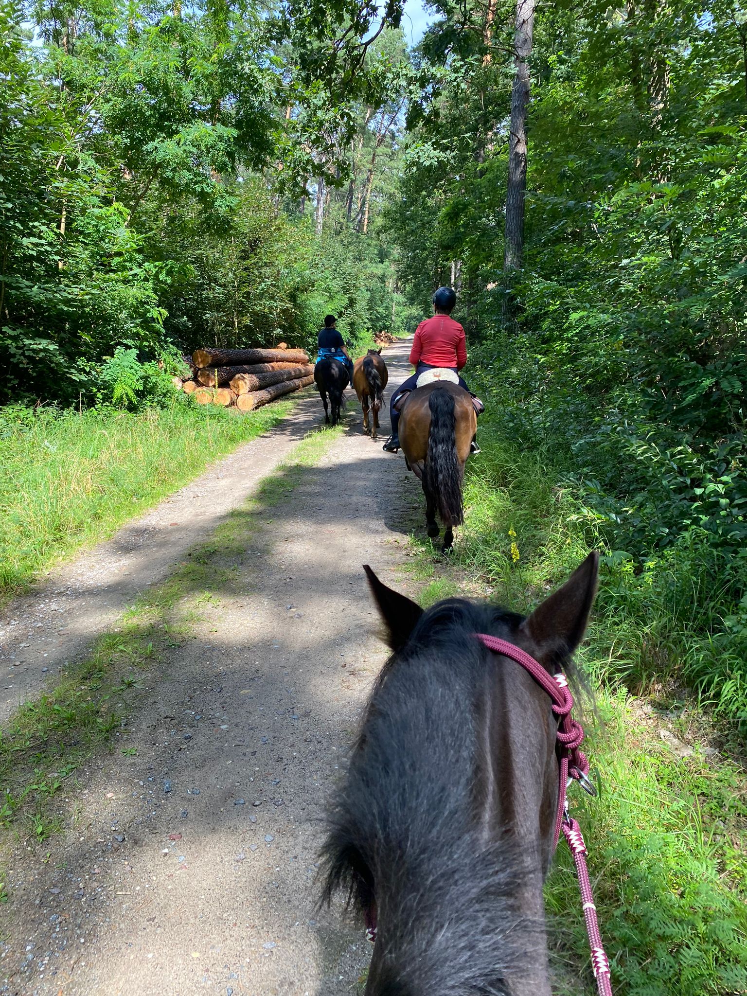 Im Sommer biete ich mit meinen Ponies geführte Wanderritte für Kinder, Jugendliche und Erwachsene (bis max. 70kg) durch unseren wunderschönen Naturpark. Diese kleinen Abenteuerreisen sind auch für mich immer wieder etwas ganz Besonderes. Der Wald verändert sich jedes Jahr und überrascht mit neuen Wegen, umgestürzten Bäumen und malerischen Aussichten. Auch die Ponies genießen diese intensive Zeit in der Natur, bei der Pferd und Mensch als Team eng zusammenwachsen.